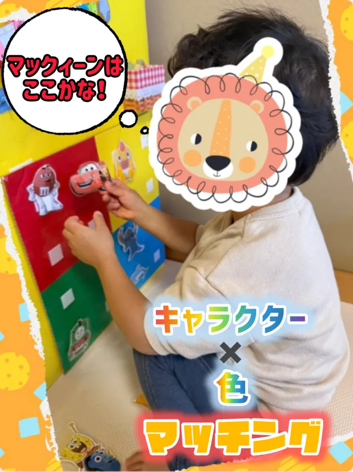 モノづくりの魔術師が作ってくれた手作り教材は、いろいろな遊びができますが、今日は色×キャラクターのマッチングをしている様子をお伝えしたいと思います📣