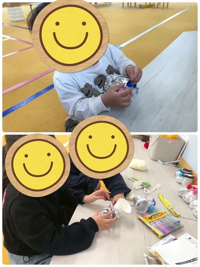 今週の活動は『製作』✂️です。クリスマス🎄も近いので今日は🎅クリスマスブーツ👢をみんなで作りました。