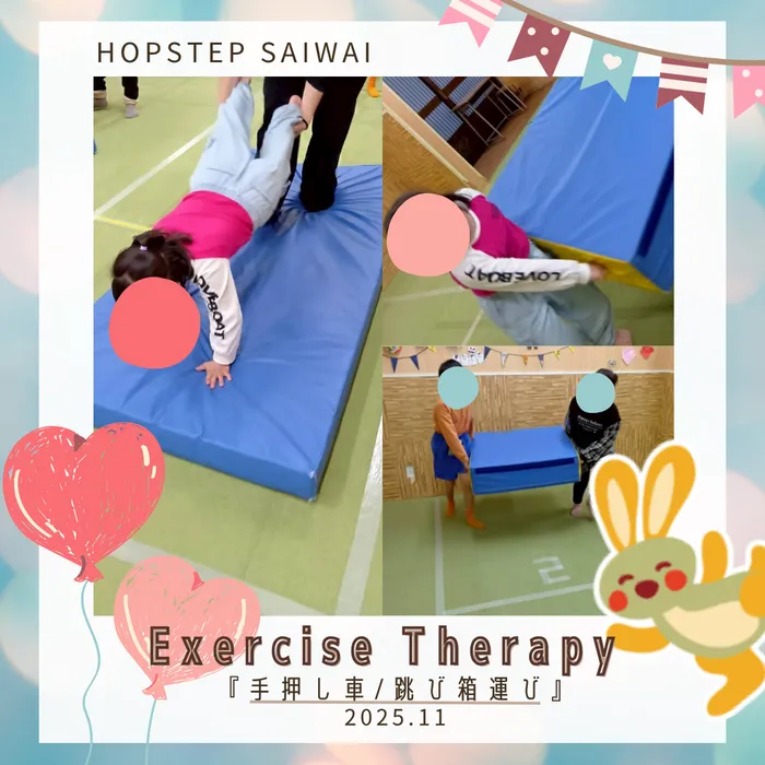 職員が児童の足を持って支えながら、手押し車の状態で進んでもらいました✨