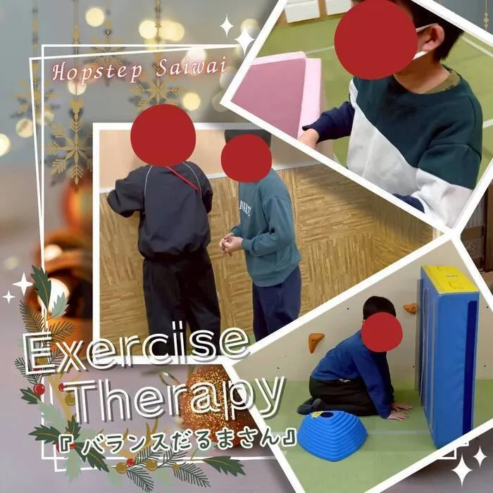 「だるまさんが転んだ!」の合図で、輪っかや平均台の上に乗って姿勢をキープします🧑🤝🧑✨