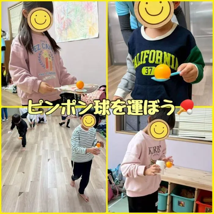 集団活動でピンポン玉運びをしました🏓