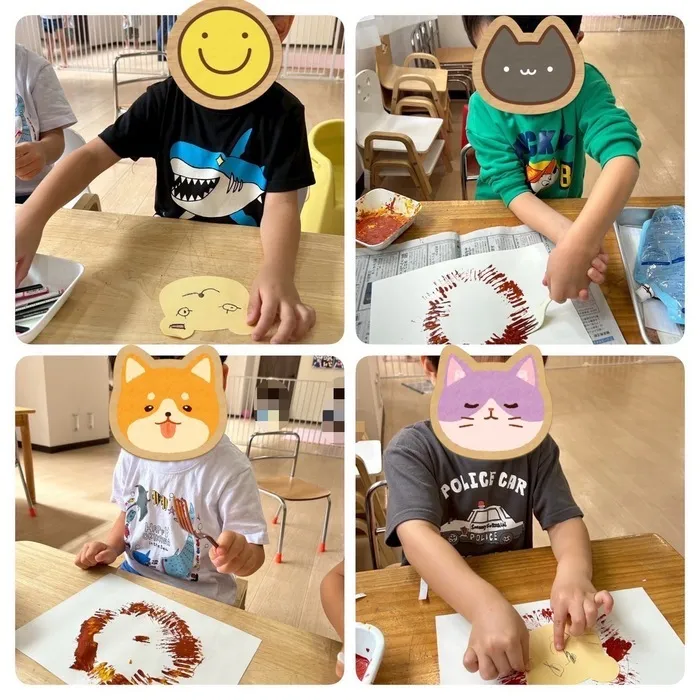 今回は、画用紙に、フォークを使って絵の具の色付けをしました🎨