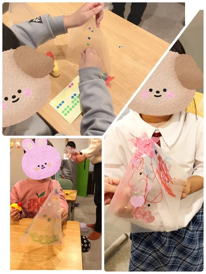 キラキラなシールやマジックで素敵にデコレーションして素敵なクリスマスツリーの出来上がりです。