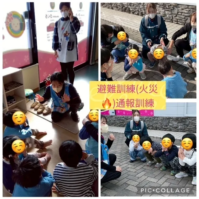 避難する時は、手やハンカチを口にあて姿勢を低くして逃げることを伝え、お子さまたちと一緒に手を口にあてて腰を低くする練習をしました🫢💭