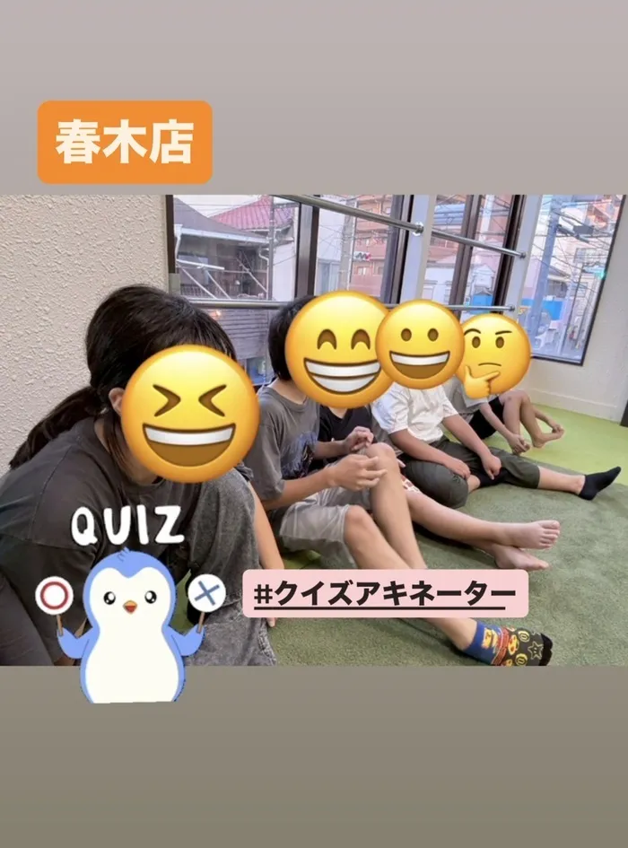 自分が出されているお題が何のキャラクターか、お友達に質問をし当てていくクイズゲームを行いました✨「男の子ですか?」「青色のキャラクターですか?」などどうすれば答えに近づくことができるか、たくさん考えながら質問されていました😁💡普段前に出て、発表することが苦手なお友達も笑顔でチャレンジしてくださりました☺️💕今回はキャラクター編でしたが、次回は日用品編にしてみようかと今からワクワクしているスタッフです😎✌️