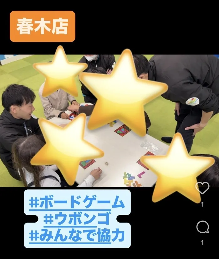 パズルゲームの“ウボンゴ”にチャレンジ!この日は“全員で協力して全員がクリアする”を目標に取り組みました✨始まる前は「苦手やぁ…😱」の言葉も聞こえましたが、いざ始まると「あ、わかった💡!」「ウボンゴ!」と嬉しそうな声が多く聞こえました☺️早くクリアしたお友達は近くのお友達を手伝う、応援する、そんな姿がたくさん見られ、全員がクリアすると自然と拍手がこぼれておりました👏💕