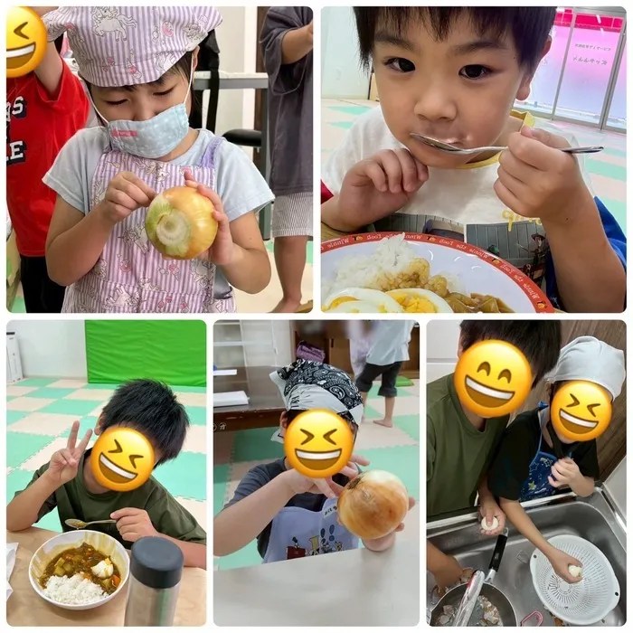 玉ねぎの皮剥き、卵の殻剥きや、カレーの味見や、カレーを混ぜてもらったり、ご飯の配膳を手伝ってもらいました☺️🥩🥢🥄🥣