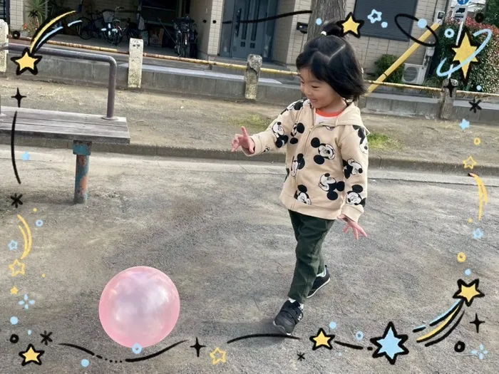 外という開かれた環境なら思いっきり体を動かせますよね😁「モノ」を使って体を動かす場面はこれからもたくさん出てきます…!自分以外のものと一緒に遊ぶことをきっかけに周りの世界への興味関心を広げていってほしいですね✨