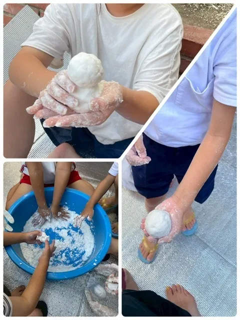 女の子チームはかわいいウサギや雪だるまを作っていて、男の子チームは団子を作って投げていい?とやんちゃぶりを発揮してました(笑)