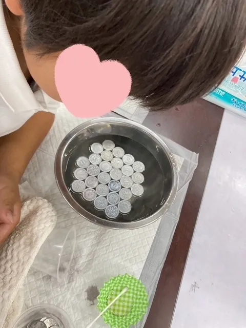 一円玉を水に浮かべるのが、結構難しんです!