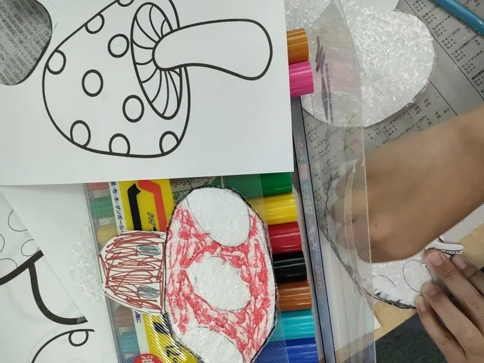 子供達に 季節を感じてもらうため、オリジナル キノコを作ってもらいました🤗