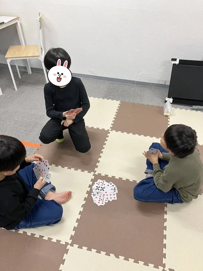 写真はババ抜きをしている様子です。