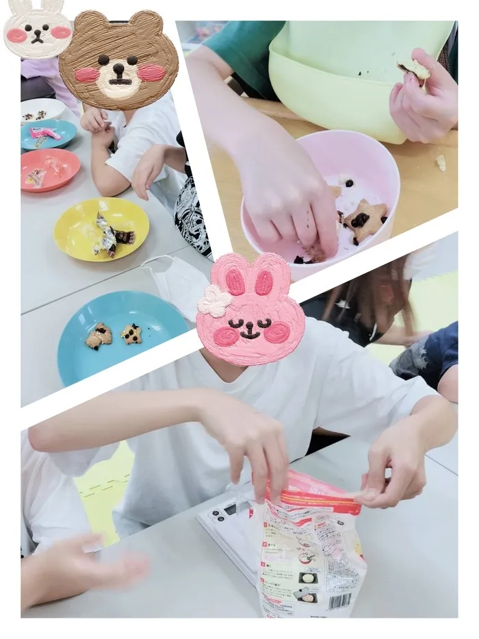 焼き上がりまでの時間はオーブンからあふれるあま〜い匂いにおやつが待ち切れない様子でした😊😊クッキーが出来上がると「わ!かわいい!」「おいしい!」と子どもたち同士での会話を弾ませながら和やかなおやつ時間となりました!