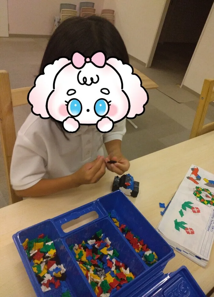 とても集中して組み立てています!