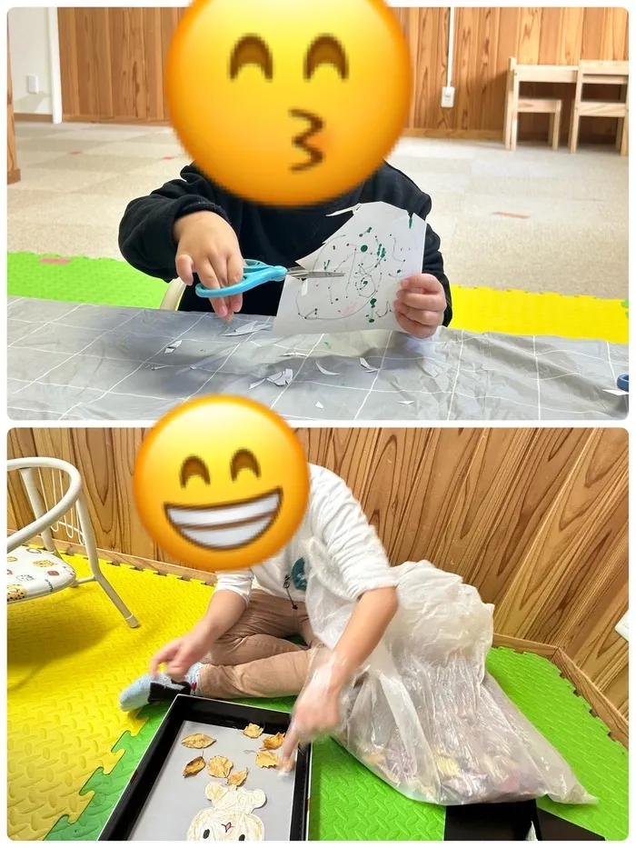 落ち葉を飾りにしたり、ライオンのたてがみを作ったりと工夫して活動出来ています🦁