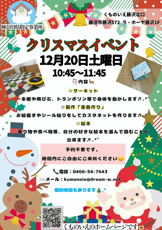 くものいえ北口教室では、12月20日土曜日にクリスマスイベントを開催します🌟