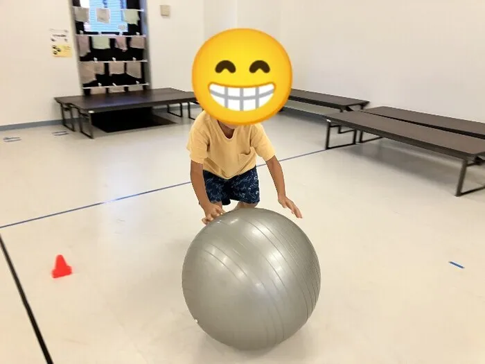 ビーチボールやバランスボールを使って、チーム対抗大玉転がしや大玉運びなどをして身体を沢山動かし楽しみました😆