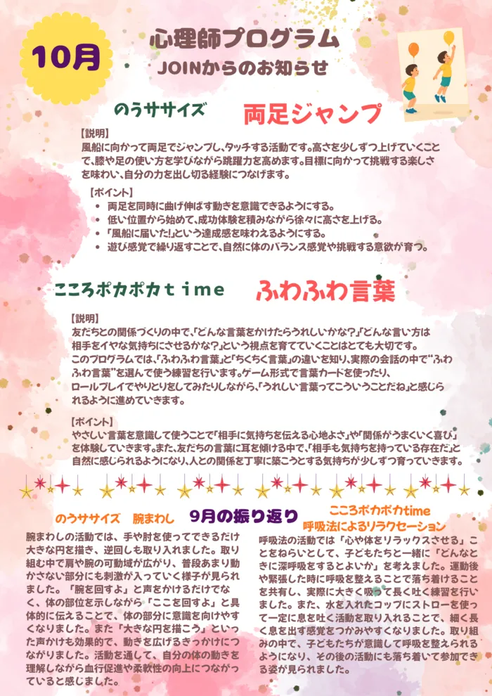 JOINの魅力のひとつが、心理師による毎月変わる特別プログラム🎓