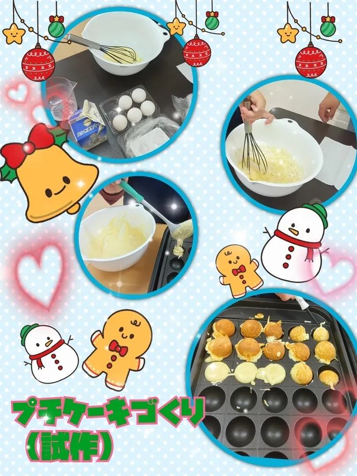 12月25日のクリスマス会に向けて、金曜日の午前中にケーキの試作を行いました。
