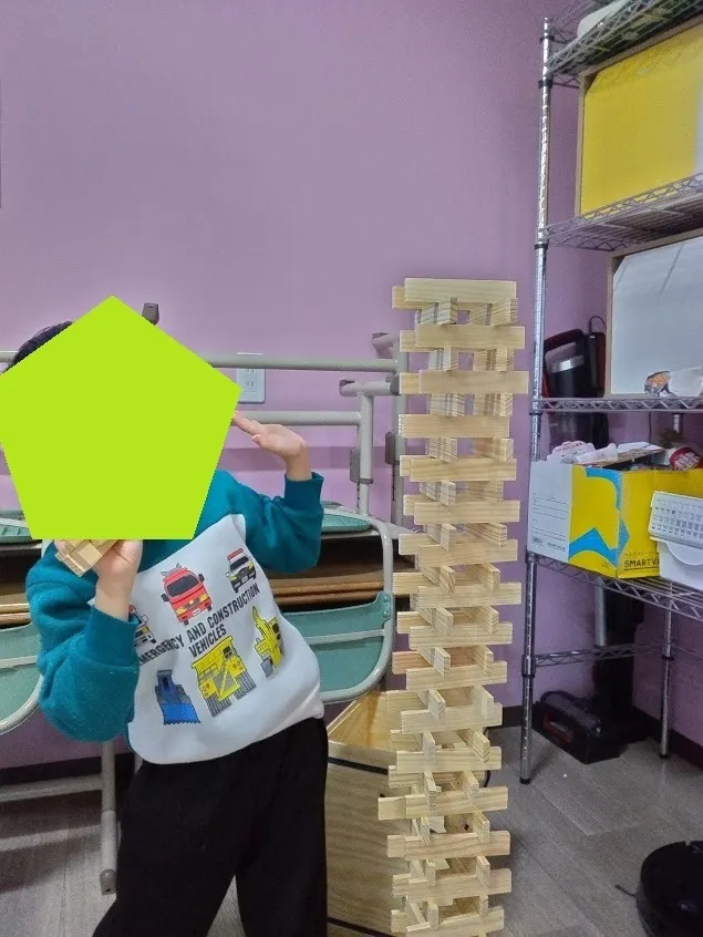 写真のお子さんは、タワーのように積み上げていました!