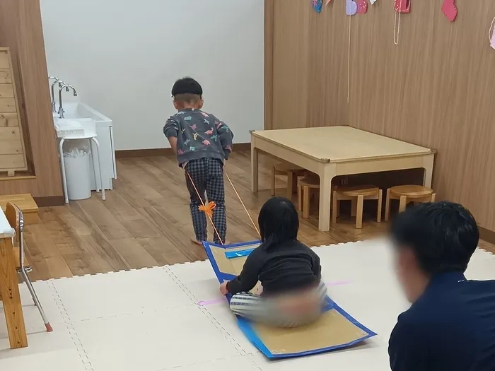 普段はなかなか行わないソリを引く動きに、前に進まなくて戸惑う子どもたち😱足の指先で踏ん張って進むのがなかなか難しいようでした🦶🏻