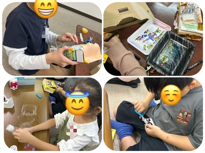 何を作るか考えてから、廃材を切ったり、可愛いシールを貼って素敵なものが完成!💖