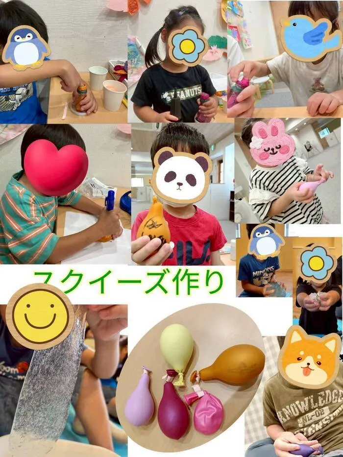 今日はスライムを風船の中に詰めてみんなでスクイーズを作りました。