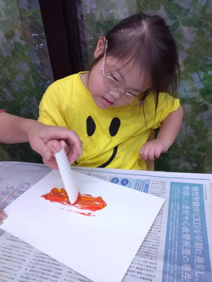 紙に絵の具ペタペタ塗り付けます。