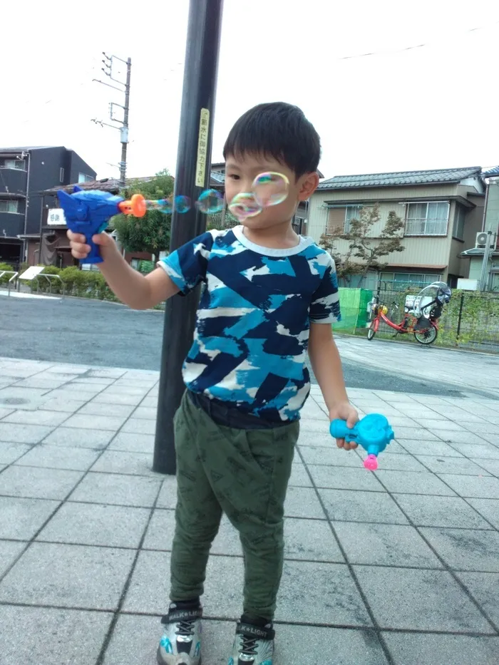 近所の公園に出向き、シャボン玉遊びをやりました🫧