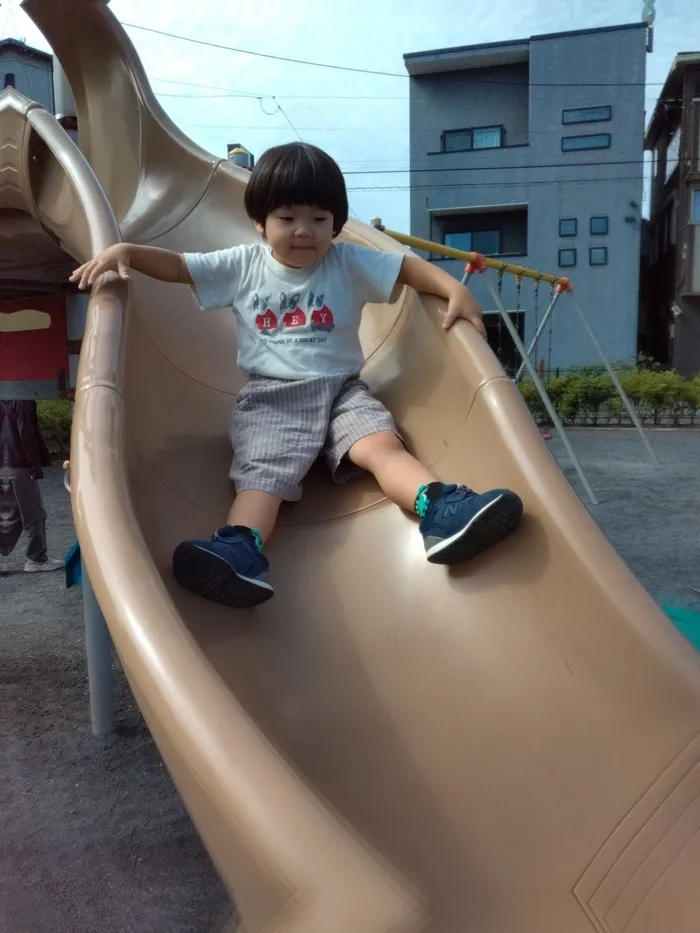 すべり台を滑ったり丘を登ったり、下ったりしながら身体を目一敗使って