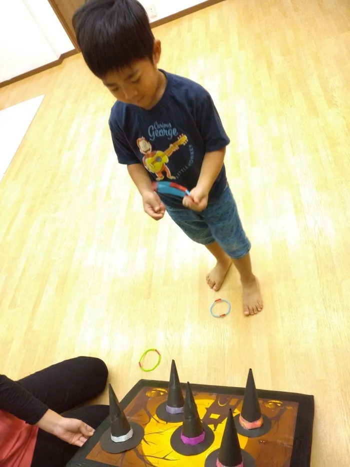 今日の児童発達の時間では、ハロウィン仕様の輪投げに挑戦🎃