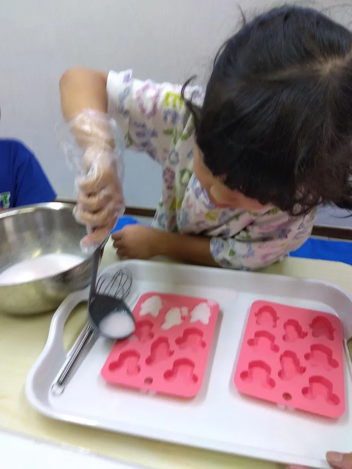 粉を入れて、お水を入れて混ぜ混ぜして、いい匂いにみんな反応してましたよ~