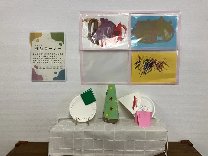 エデュリーでは子どもたちが作ったものを「作品コーナー」に展示しています。