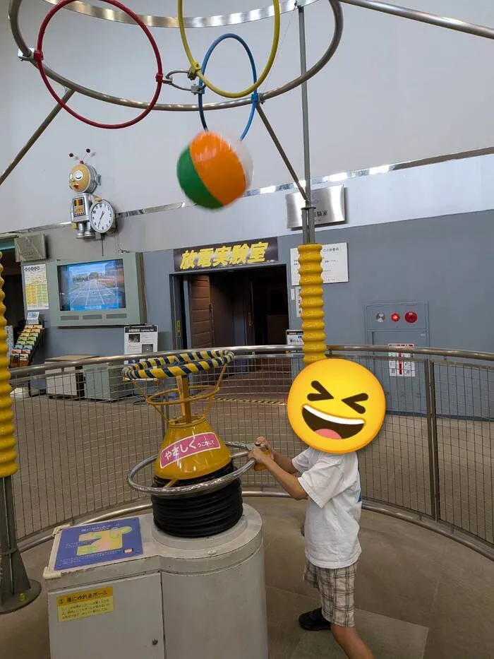 ビーチボールを風で浮かせて、上にある輪っかに通す遊びをとても楽しんでおりました!
