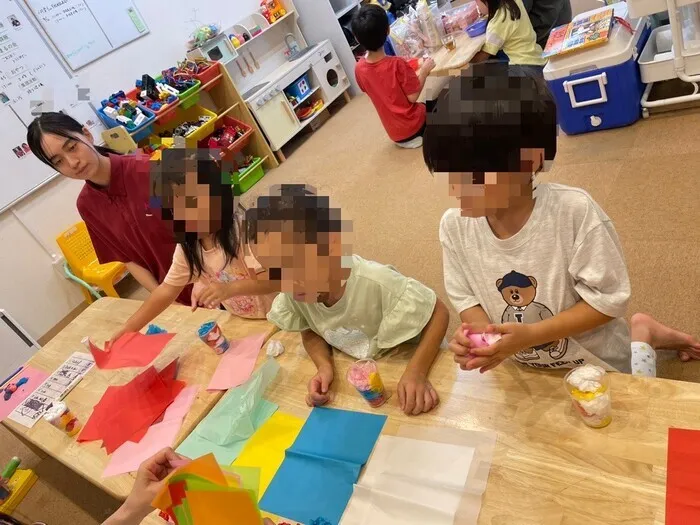 色とりどりの折り紙やカラーペーパーを広げると、子どもたちの目がキラキラ👀✨