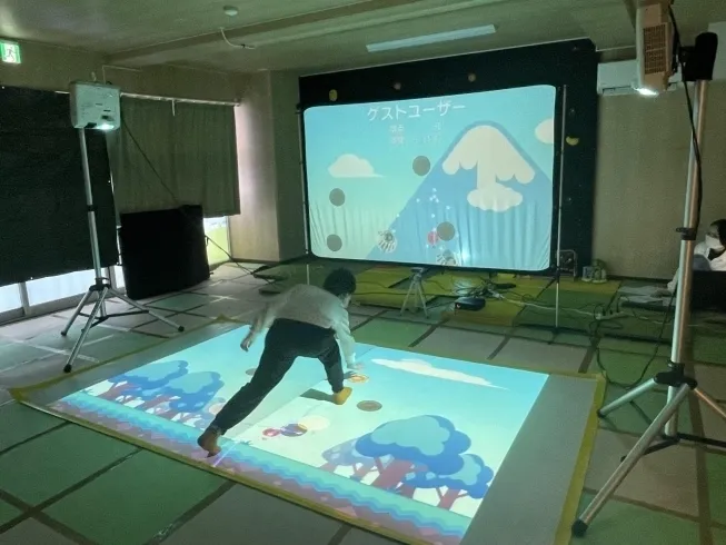 全面のスクリーンと足元のマットにランダムに現れるコインを手で素早くタッチしていく運動です✨
