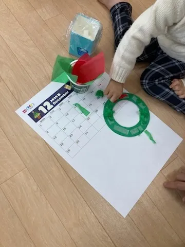 お花紙を使い、リースを作り、カレンダーに貼りました。