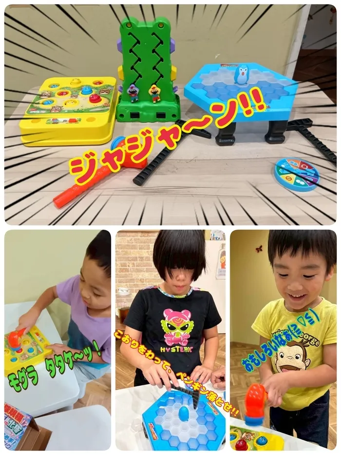 フロアに置いておくと、午前中に来所した未就学のお子さんが早速興味を示し「やってみた~い!!」と言ってゲームにチャレンジ!!笑顔で氷をはめ込んだりハンマーで割ったりしていました。