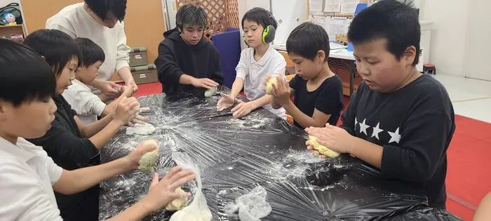 昨日の活動は小麦粉粘土を使った感触遊びをしました。感触遊びの狙いは多様性を体験する中で好奇心や想像力を養うことです。また、様々な感触を体験することで、手や身体の動きを学び、集中力や安心感、危険察知能力などを育むことにもつながります。