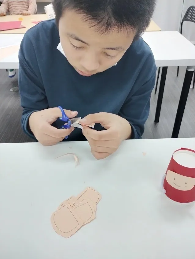 画用紙に定規で直線を引く、画用紙や紙コップに両面テープを貼る、画用紙をハサミで切るなど、担当ごとに分かれて作業を行いました。