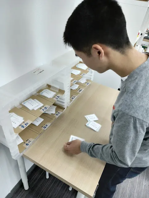 ハガキの住所を確認しながら、16種類の県ごとに分けてもらいました!