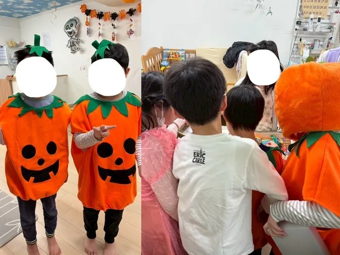 31日、ハロウィン当日はみんなでトリックオアトリート!と言って施設内を回り、お菓子を貰う体験をしました🍪