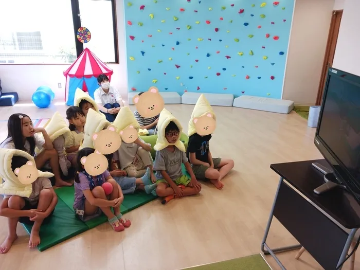 まず、テレビで地震についての備え方、地震が起きてしまったときの対応を動画で学びました。