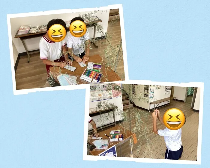 早速見つけた子が「短冊書きたい!」「どんなお願いにしようかぁ」と、思い思いのお願いごとを書いていました⭐