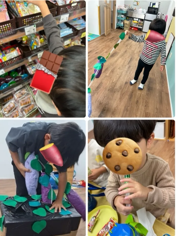 おやつの時間には、買ったお菓子をみんなで見せ合いっこ😊