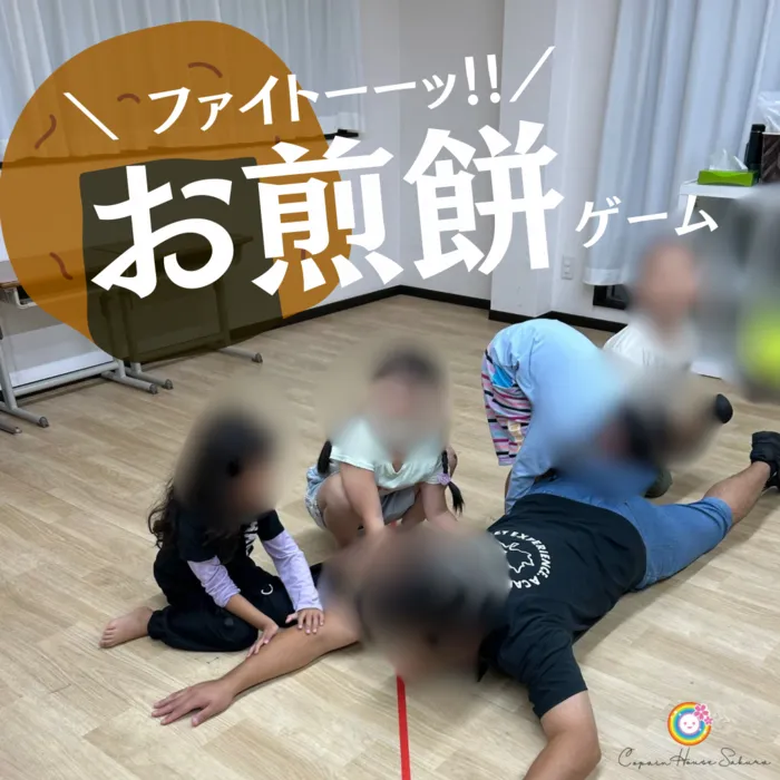 おせんべい役のお友達は、ひっくり返されないように力を入れて踏ん張る!!