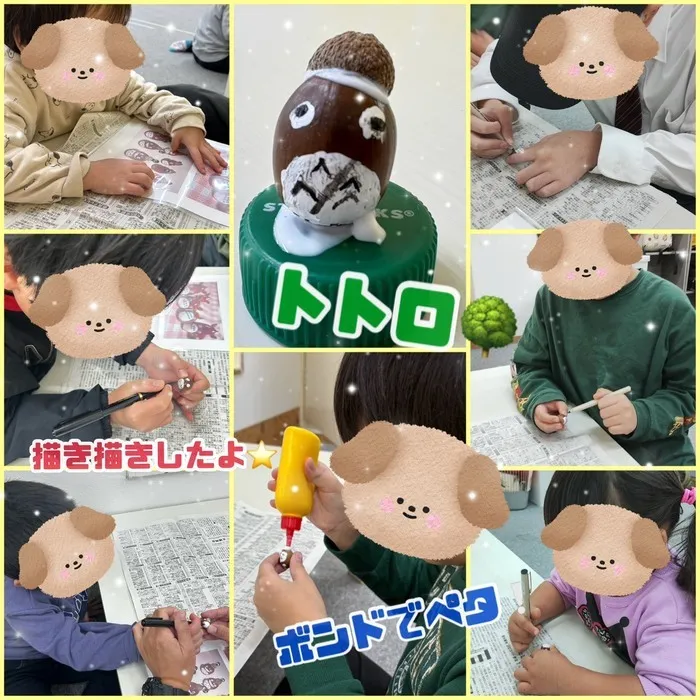 トトロのように、お顔や柄を描いて、可愛いどんぐりができました✨️