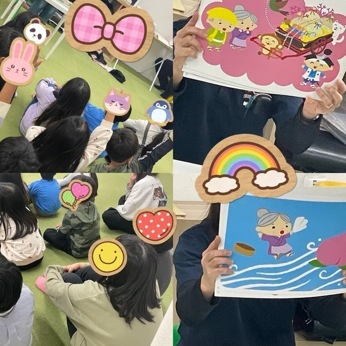 最後に、「桃から生まれた子供の名前は??」や「桃太郎はどの動物に出会った?」など職員から物語の質問があり、頭に入れた記憶を辿りきちんと質問に答えることが出来ていましたよ✨️🎀ᩚ
