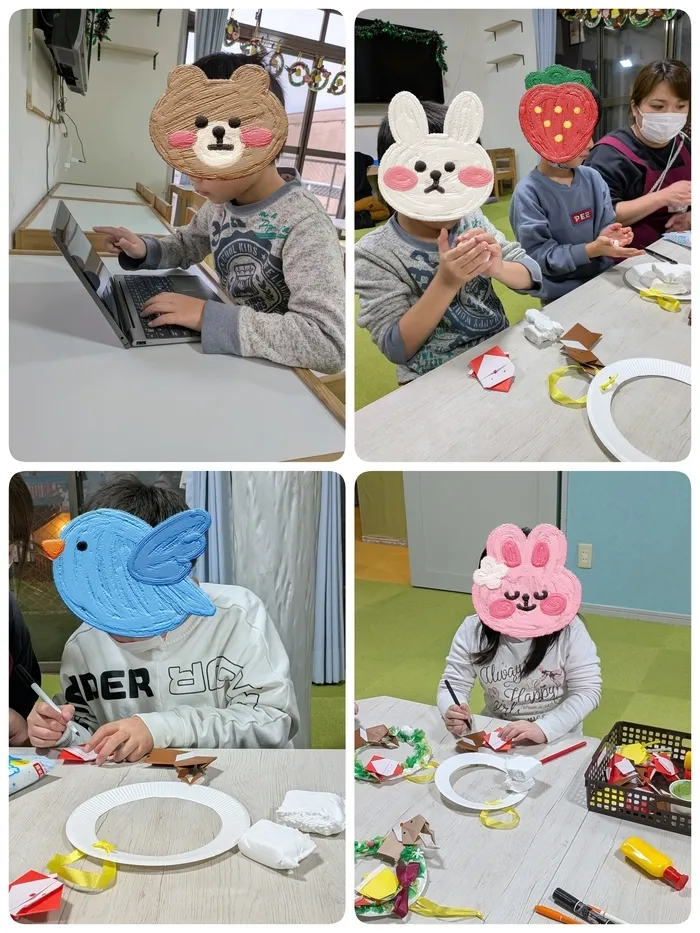 クリスマスリースの制作🌲が初めての友達を中心に取り組みました☺️☺️