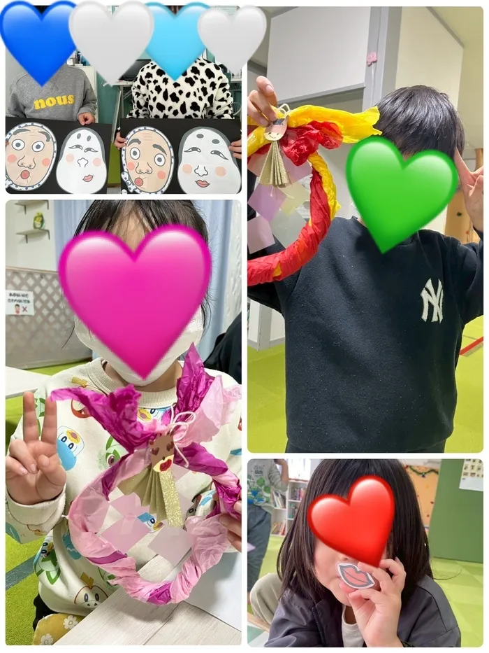 今週は制作weekとのことで、福笑いとしめ縄をつくりました✨